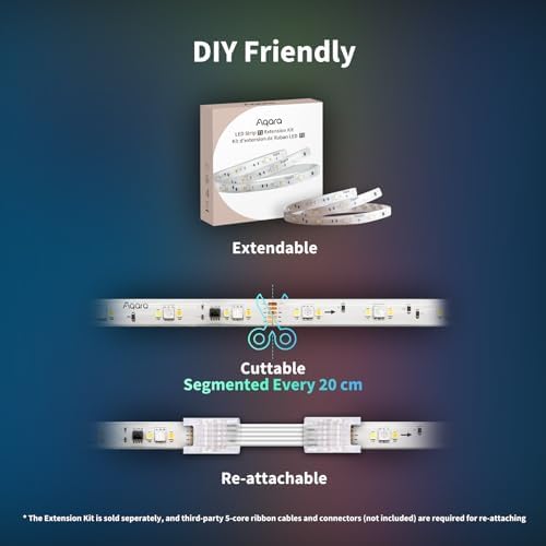 À propos de cet article ✽[NOTES]Un hub Zigbee 3.0 Aqara est requis et vendu séparément (sauf Caméra Hub G2H ). Nécessite une connexion réseau Wi-Fi sécurisée de 2,4 gigahertz pour le Hub domotique M2 / domotique M1S / domotique E1 / domotique M1S Gen 2, la Caméra Hub G2H Pro et le Wi-Fi 2,4 GHz / 5 GHz pour la Caméra Hub G3. (La connexion filaire via Ethernet RJ45 pour Hub domotique M2 est également supportée). [Compatibilité et Support Matter ] Avec un hub Zigbee 3.0 Aqara, le Ruban LED T1 est compatible avec une variété d’écosystèmes grand public, comme Matter (un hub Aqara compatible avec Matter est requis), Apple HomeKit, Google Home, Alexa, IFTTT ainsi que l’app Aqara Home, ce qui lui permet d’être facilement intégré dans une large gamme de configurations de maison intelligente et utilisé dans la domotique intelligente. [RGBIC avec effets de dégradé et Adapté au BRICOLAGE] Avec la possibilité de configurer individuellement chacun des dix segments du ruban, chaque segment peut avoir des couleurs, des niveaux de gradation et des effets différents. (* Veuillez noter : RGBIC n’est disponible que pour les scènes colorées (RVB), mais pas pour le blanc accordable.) De plus, Le Ruban LED est découpeable, extensible jusqu’à 10M (Le Ruban d’extension est vendue séparément) et re-fixable. [16 millions de couleurs / Fonction de synchronisation de la musique locale et blanc accordable] Le T1 Aqara est doté d’un CCT RVB pour fournir jusqu’à 16 millions de couleurs vives et un éclairage d’accentuation blanc accordable, vous permettant de personnaliser votre éclairage pour l’adapter à n’importe quelle humeur ou occasion. De plus, il y a un microphone intégré qui permet le mode de synchronisation musicale sans ouvrir l’app, offrant une expérience d’éclairage amusante et dynamique. [Technologie économe en énergie] Le Ruban LED T1 adopte la technologie Zigbee 3.0 et agit comme un répéteur maillé, rendant votre réseau Zigbee plus fiable. De plus, il a un indice de protection IP44*, ce qui signifie qu’il est protégé contre la poussière et peut également être utilisé à l’extérieur. (* Veuillez noter que cela ne concerne que la partie des Rubans lumineuxs LED, le contrôleur et l’alimentation ne sont pas résistants aux intempéries et doivent être installés à l’intérieur). Zigbee2MQTT et les clés USB tierces comparables ne sont pas officiellement prises en charge par Aqara. Les fonctionnalités complètes du produit peuvent être limitées, voire indisponibles.
