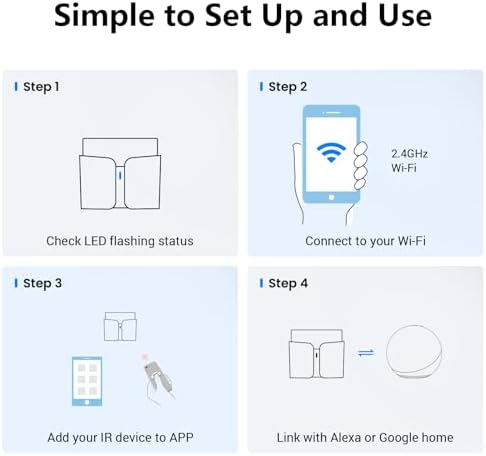 Compatible Alexa et Google Home. Utilisez des commandes vocales pour piloter TV, clim et autres appareils via les fonctions préconfigurées de l’application. Les boutons appris manuellement dans le panneau personnalisé doivent être ajoutés à une scène pour être contrôlés par la voix.