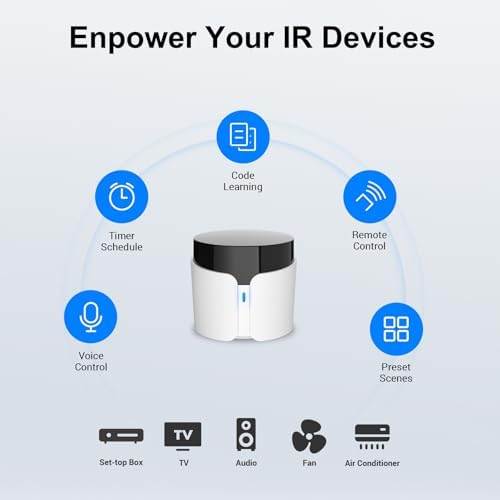 À propos de cet article 【Télécommande Universelle Tout-en-Un】RM5plus est notre télécommande intelligente universelle de 5e génération, conçue pour contrôler plus de 5 000 appareils infrarouges — téléviseurs, climatiseurs, ventilateurs, décodeurs et bien plus. Libérez votre espace des télécommandes encombrantes et profitez d’un contrôle intelligent fluide dans toute la maison. 【Contrôle à Distance Où Que Vous Soyez】Connectez-vous via Wi-Fi et contrôlez tous vos appareils infrarouges à distance via l’application BroadLink. Allumez le climatiseur avant d’arriver chez vous ou éteignez vos appareils en déplacement — idéal pour le confort et les économies d’énergie. 【Contrôle Vocal Mains Libres】Compatible avec Alexa et Google Assistant. Utilisez des commandes vocales pour contrôler la TV, changer de chaîne ou ajuster la climatisation. Profitez du confort du contrôle sans les mains et d’une maison plus intelligente. 【Scènes Intelligentes, Programmation & Automatisation】Créez des scènes à un seul bouton pour vos routines — comme une soirée cinéma avec activation synchronisée de la TV, des enceintes et du lecteur DVD. Activez le mode « Départ de la maison » pour éteindre tous les appareils en une seule touche. Programmez des minuteries pour un confort optimal et des économies d’énergie. 【Apprentissage Infrarouge Manuel avec “UserDefine”】Vous ne trouvez pas votre appareil dans la base de données BroadLink ? Utilisez le panneau “UserDefine” pour apprendre et enregistrer manuellement les commandes de votre télécommande d’origine — idéal pour les appareils IR anciens ou peu courants.