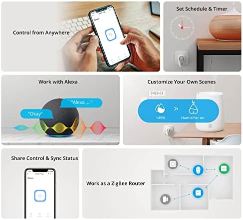 À propos de cet article Si le produit n’est pas en stock, veuillez vous rendre dans la section de comparaison du produit ci-dessous dans les informations sur le produit et cliquez sur le lien d’image pour acheter la dernière version mise à jour, ou recherchez directement « S26R2ZB ». Fonctionne comme répéteur Zigbee : utilise des réseaux en maille pour augmenter la portée d’autres appareils Zigbee de votre réseau qui sont plus éloignés de votre hub. Fonction minuterie : la prise Zigbee vous permet de régler les horaires, les minuteries et les zones via l’application eWelink, le contrôle des lumières, des humidificateurs, des machines à café et d’autres appareils pour obtenir une automatisation intelligente. Scène intelligente : cette prise Zigbee fonctionne avec d’autres appareils intelligents. comme déclenché par la température ; réglez la routine du lever et du coucher du soleil pour allumer ou éteindre la lumière. Rendez votre vie plus intelligente. Commande vocale : la prise Zigbee SONOFF fonctionne parfaitement avec Alexa, Google Assistant, SmartThings, IFTTT, libérez vos mains. Nécessite le hub Zigbee : cette prise intelligente Zigbee S26R2ZB nécessite la connexion de la passerelle Zigbee pour l’utiliser, elle peut être connectée à SONOFF ZBBridge, SONOFF ZBBridge-P, SONOFF Zigbee Dongle Plus, Amazon, Samsung, Philips, appareils intelligents intégrés tels que SONOFF SONOFF 4ème génération.