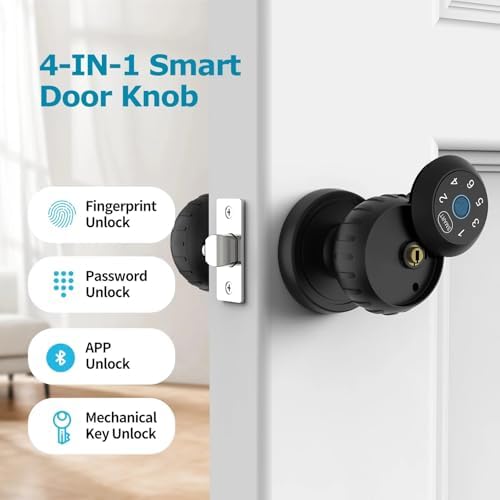 Fonction de poignée de porte : biométrique, clé et clavier