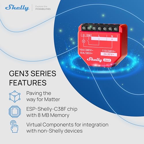 10 avis pour Shelly 1PM Gen3 – Interrupteur Connecté Wi-Fi, 1 Canal – 16A, Compteur d’énergie Intégré, Aucun Hub Requis, Éclairage connecté, Puce Shelly 8 MB, app iOS Android, Compatible avec Alexa, Google Home Amazon.fr: Bricolage