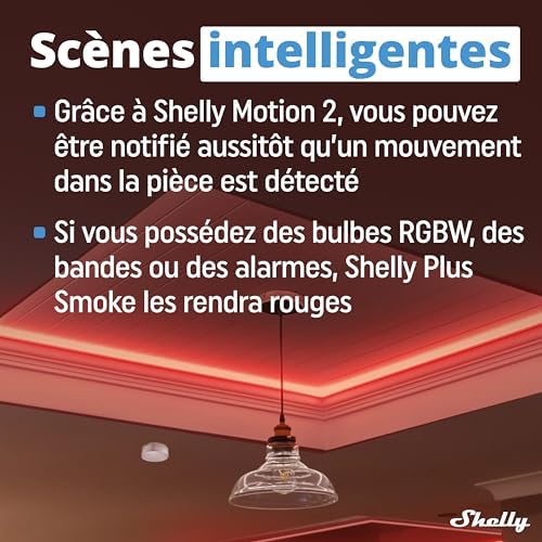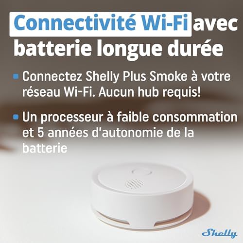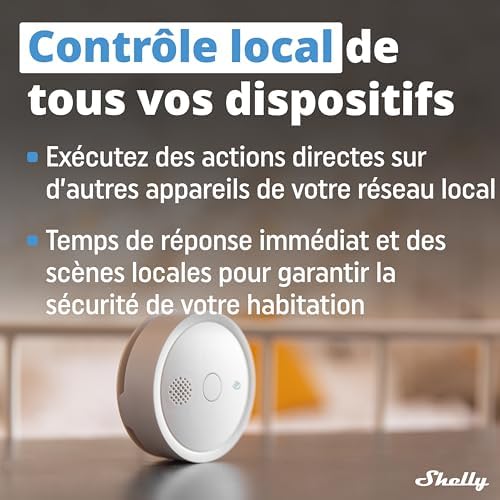 À propos de cet article Détecteur de fumée à distance – Une fois intégré dans votre app Shelly Smart Control (via Wi-FI ou Bluetooth), Shelly Plus Smoke est accessible à distance (via Wi-FI seulement), vous alertant de tout danger au sein de votre domicile Alertes et Notification immédiates – Hormis l’alerte sonore (>85 db) et lumineuse, le dispositif est encore en mesure de vous avertir d’une incendie via des notifications smartphone en temps réel Actions et Scènes intelligentes – Profitez des scènes intelligentes et des crochets web pour activer d’autres dispositifs Shelly et améliorer davantage la sécurité : associé à votre interrupteur connecté Shelly, le dispositif peut couper l’alimentation de tous les appareils chez vous ou bien allumer l’éclairage de secours Autonomie de 5 ans – Shelly Plus Smoke profite non seulement d’une impeccable sensibilité, mais également d’une longue et fiable autonomie de la batterie, allant jusqu’à 5 ans Commande vocale ou via App – L’app Shelly Smart Control vous aide à contrôler vos appareils et équipements électriques à distance, personnalisant vos automatisations à l’infini; Par ailleurs, ce dispositif permet encore un pilotage à travers plusieurs assistant vocaux et systèmes de Domotique, dont Alexa, Google et SmartThings