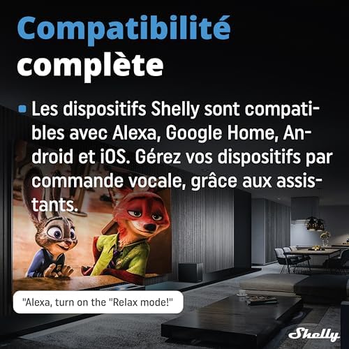 • Aucun hub n’est nécessaire. Contrôle depuis l’application Shelly Smart Control, la plupart des plateformes et protocoles, ainsi que les assistants vocaux. Utilisez-le avec Alexa, Home Assistant ou votre plateforme d’automatisation.