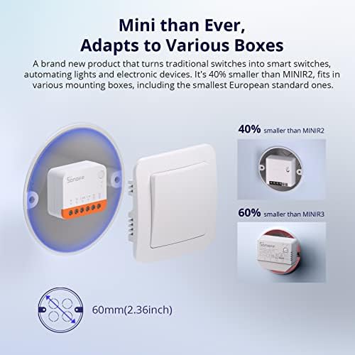 SONOFF MINIR4 WIFI Interrupteur Sans Fil, 2 Voies Interrupteur Intelligent Micromodule