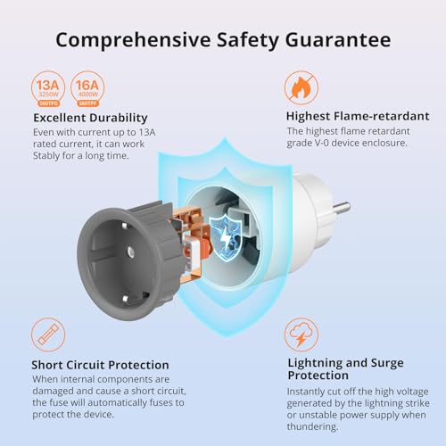 | Feature | 【Sûr et fiable】 Il a le plus haut retardateur de flamme, une excellente durabilité, une protection contre les surcharges, une protection contre les courts-circuits, une protection contre la foudre et les surtensions. La protection enfants empêche les enfants d’insérer leurs doigts ou d’autres objets dans les trous d’épingle de la fiche. |
