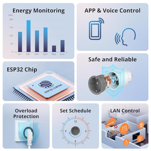 À propos de cet article 【Surveillance de l’énergie】 En vérifiant la consommation d’énergie cumulée quotidienne, mensuelle et annuelle, vous aidez à économiser de l’argent sur vos factures d’énergie. 【Programmation et minuterie】 Utilisez une minuterie ou un compte à rebours pour configurer votre prise S60 afin qu’elle allume et éteigne automatiquement tous les appareils électroménagers. 【Application et contrôle vocal】 Contrôlez la prise S60 de n’importe où et à tout moment via l’application eWeLink, ou donnez des commandes vocales à Alexa ou Google. 【Scène intelligente】Utilisez avec le capteur de présence humaine SONOFF SNZB-06P pour allumer les lumières lorsque quelqu’un est présent et éteindre lorsque quelqu’un est parti. 【Sûr et fiable】 Il a le plus haut retardateur de flamme, une excellente durabilité, une protection contre les surcharges, une protection contre les courts-circuits, une protection contre la foudre et les surtensions. La protection enfants empêche les enfants d’insérer leurs doigts ou d’autres objets dans les trous d’épingle de la fiche.