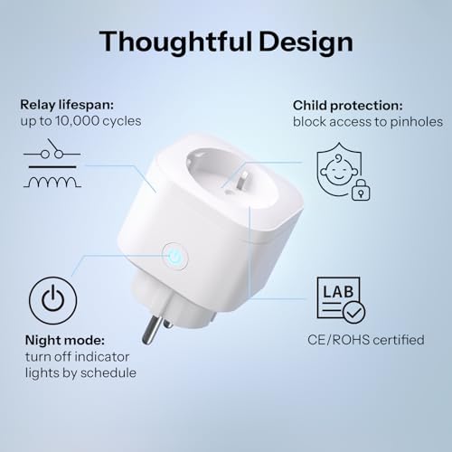 | Feature | Sécurité et fiabilité – Cette prise WiFi intègre des protections intelligentes contre surcharge et court-circuit. Sa conception robuste assure une utilisation sûre et durable, garantissant une prise connectée fiable au quotidien. |