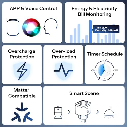 À propos de cet article Contrôle à distance via App – Gérez vos appareils partout grâce à cette prise connectée WiFi, idéale pour vos déplacements, vacances ou absences. Vérifiez et contrôlez vos équipements à tout moment pour un maison intelligente pratique et sécurisée. Commande vocale & multi-plateforme – Cette prise connectée via WiFi/Matter est compatible avec Alexa, Google Home, IFTTT, SmartThings, Apple Home / HomeKit & Home Assistant. Activez vos appareils par la voix et automatisez vos routines facilement. Minuterie flexible et automatisation – Programmez vos appareils avec cette prise connectée : minuterie, compte à rebours, cycles réguliers ou aléatoires. Automatisez café, équipements de bureau en semaine ou simulez présence lors de vos absences. Suivi énergétique en temps réel – La mesure de consommation électrique vous permet de suivre tension, courant et puissance. Identifiez les appareils énergivores, exportez vos rapports et activez la protection contre surcharge pour plus de sécurité. Sécurité et fiabilité – Cette prise WiFi intègre des protections intelligentes contre surcharge et court-circuit. Sa conception robuste assure une utilisation sûre et durable, garantissant une prise connectée fiable au quotidien.