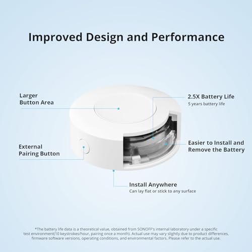 | Feature | 【5 ans d'autonomie】Alimenté par une pile CR2477. *Les données relatives à la durée de vie des piles proviennent du laboratoire interne de SONOFF, veuillez vous référer à l'utilisation réelle. |