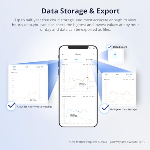 | Feature | 【Data Storage & Export】Up to half-year free cloud storage, and most accurate enough to view hourly data, you can also check the highest and lowest values at any hour or day and data can be exported as files. |
