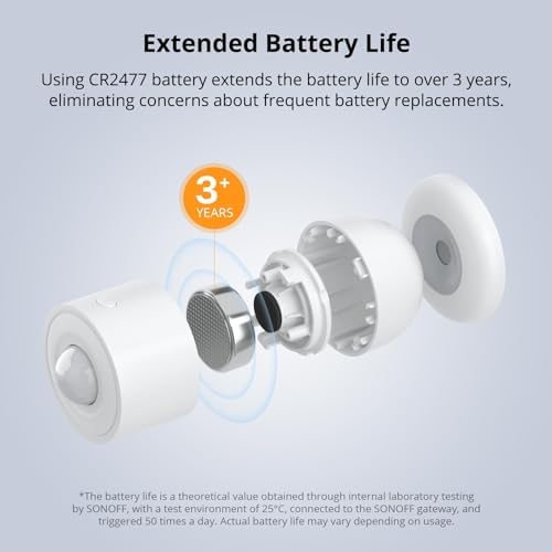 À propos de cet article 【5-Sec Faster Detection】Automatiquement, les lumières s’allument immédiatement lorsque vous passez, et s’éteignent après votre départ, le temps le plus court peut atteindre 5 secondes, vous aidant à économiser de l’énergie. 【Autonomie de 3 ans】Alimentée par une pile CR2477, la durée de vie de la pile est supérieure à 3 ans, ce qui élimine les problèmes liés aux remplacements fréquents de la pile. 【Zigbee 3.0 Compatible】Supporte les hubs Zigbee utilisant le protocole Zigbee 3.0, tels que SONOFF NSPanel Pro, SONOFF iHost, SONOFF ZB Bridge Pro, SONOFF ZBDongle-E, et Echo Plus 2nd… 【Scène intelligente locale】 Même si votre réseau WiFi tombe en panne, vous pouvez toujours activer les scènes locales Zigbee tant que vos appareils Zigbee sont allumés. 【Sécurité domestique】SNZB-03P peut également être utilisé à des fins de sécurité, notamment pour détecter les entrées non autorisées. Il peut déclencher l’enregistrement d’une vidéo par une caméra, activer une alarme sonore via la passerelle et envoyer des notifications par application pour vous alerter et assurer la sécurité de votre famille et de vos biens.