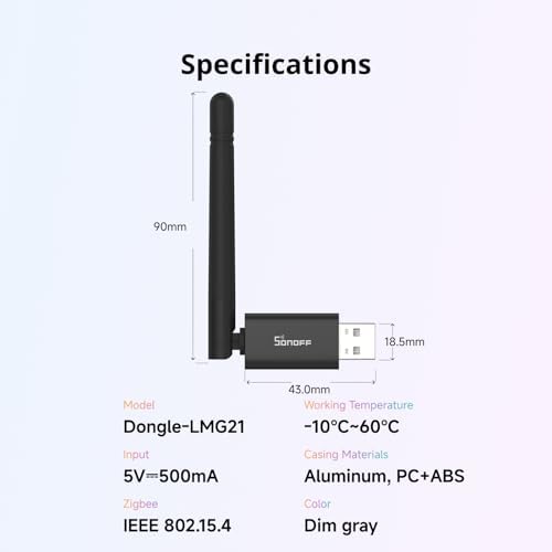 À propos de cet article Puce éprouvée EFR32MG21. Confiée par des millions d’utilisateurs, la puce EFR32MG21 garantit des performances fiables et stables. Taille compacte. Le design compact permet une installation facile dans différentes positions de port USB. Large compatibilité de plate-forme. Le dongle Zigbee fonctionne avec Home Assistant, Zigbee2MQTT, openHAB et prend en charge les appareils Zigbee 3.0 tels que Philips Hue, Aqara, IKEA Tradfri et SONOFF. Mise à jour flexible du micrologiciel. Le firmware peut être facilement flashé via le SONOFF Dongle Flasher ou l’add-on pour basculer entre le coordinateur Zigbee, le routeur ou le mode RCP thread. Câble d’extension USB inclus. Permet un placement flexible et réduit les interférences électromagnétiques causées par les ports USB 3.0.